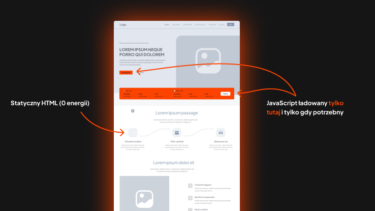 Next.js to potężne narzędzie, ale dla standardowej strony marketingowej bywa jak wysyłanie helikoptera po zakupy do Żabki. Standardowa aplikacja Next.js wysyła do przeglądarki spory „runtime” JavaScriptu (często powyżej 70 KB skompresowanego kodu), który musi zostać przetworzony, zanim strona stanie się w pełni interaktywna.