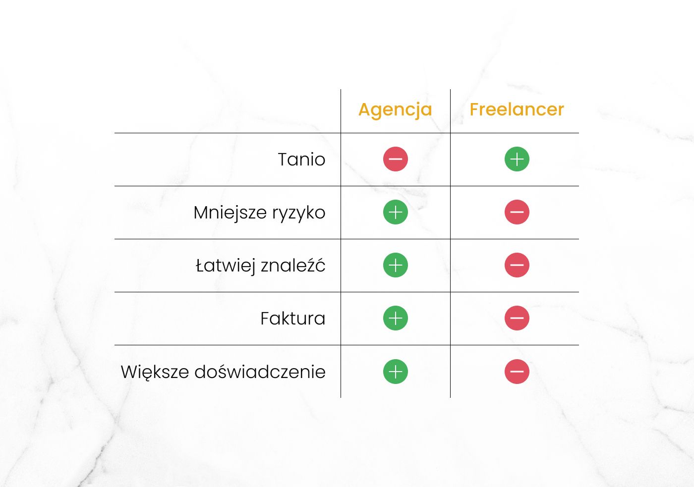 Spróbujmy więc rozpisać plusy i minusy skorzystania z usług agencji oraz freelancera:
